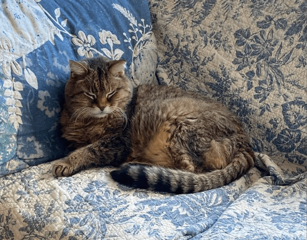Feb. 22, 2022—Max went to his grooming appointment with Alex the Cat Groomer. Alex has closed his Shoreline satellite, is building a new place in Bothell, but is currently working out of his old Woodinville office. So that was a schlep, but Max did just fine, listening to audiobooks with me on the ride. Now he is marvelously fluffy, mat-free, and cheerful. Max is a bit forgetful these days (he’s also 17) but gets around surprisingly well and never misses a meal. Unfortunately, he thinks the new cat water fountain is a footbath.