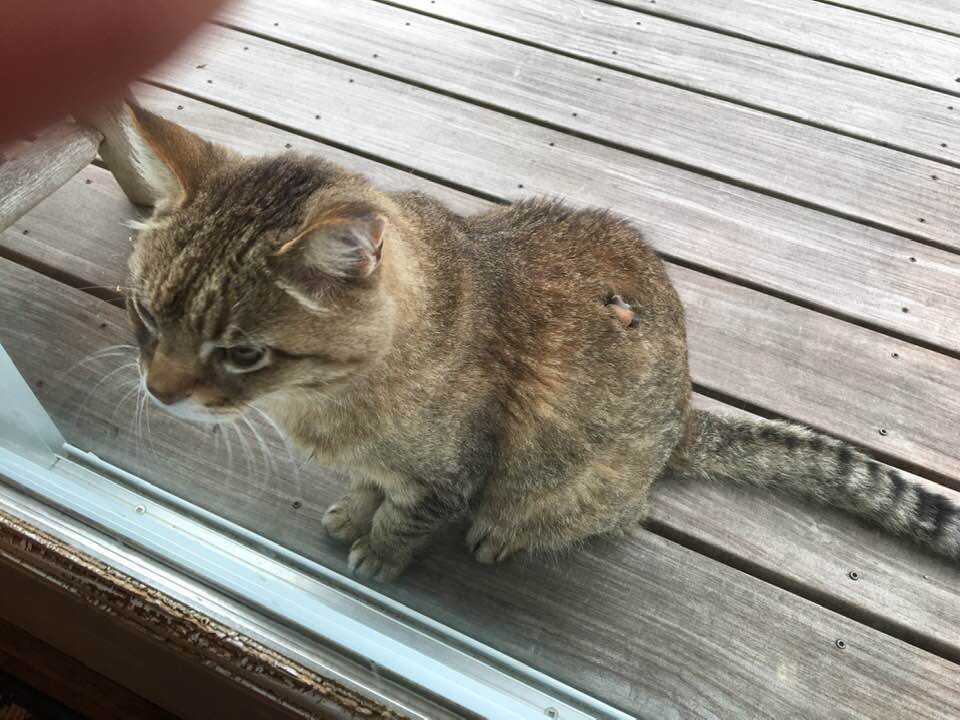 August 7, 2019—We removed the snail before we let Max in: