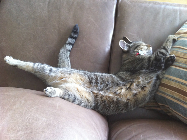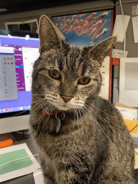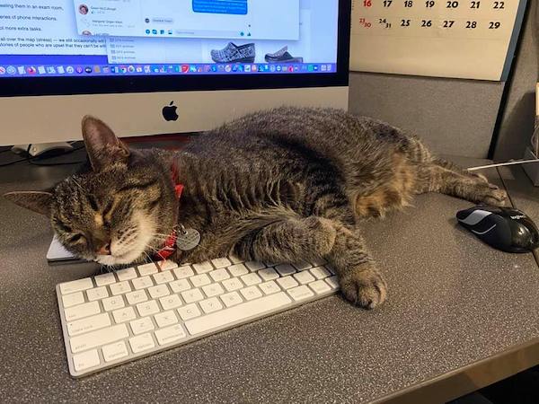Feb. 28, 2019—After 15 years of yelling, swatting, and shoving, I have finally found something that will get Zoe off my keyboard, mouse, and trackpad: It’s Mussorgsky’s “Pictures at an Exhibition.” A friend posted a link and as soon as the horns blasted the opening notes Zoe stood up, looking totally annoyed, and stalked off. (no photo)
