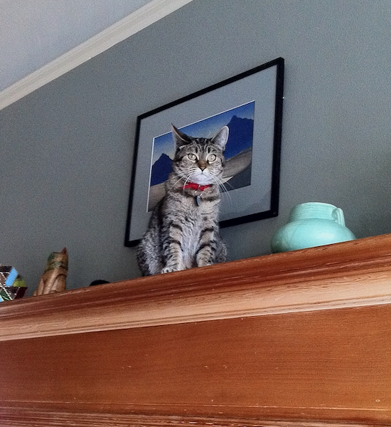 July 14, 2013—Kaylee decided to take up residence in the china cabinet.