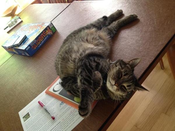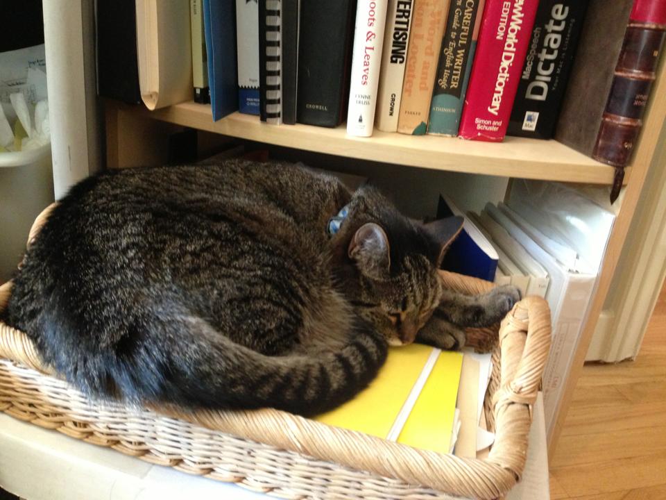Feb. 26, 2016—Zoe was sleeping under the desk when I used the printer. As you can see, she was deeply disturbed.