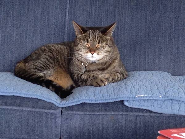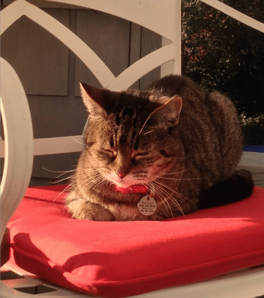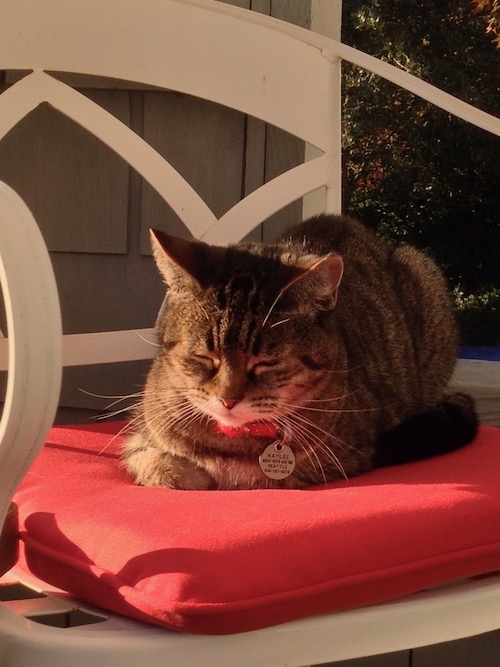 Jan. 6, 2015—We said goodbye to little Kaylee at the specialty clinic today, where she had been being treated for lymphoma. Kaylee (April 2004 – Jan. 6, 2015). Missed by all of us, especially her sister Zoe. Here she is, enjoying the afternoon sun on the front porch this past fall: