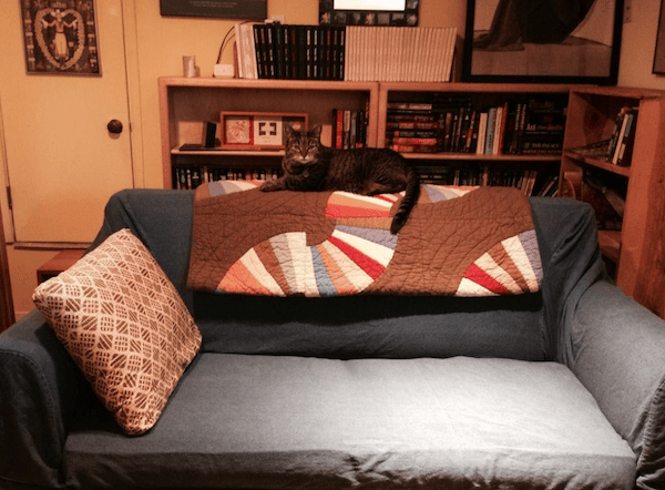 July 8, 2014—New Slipcovers for the basement couch. Zoe: “I must shed on them immediately”