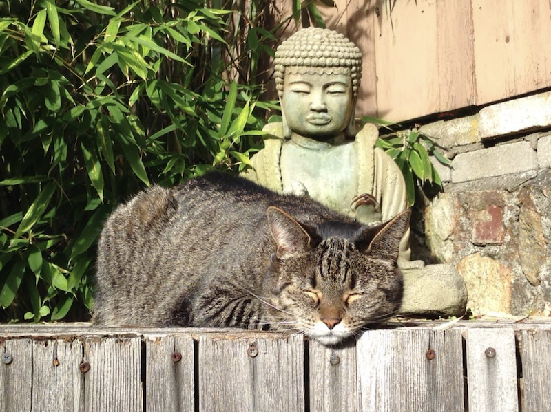 March 12, 2018—Zoe on the back porch bench. Sunny and warm in Seattle: