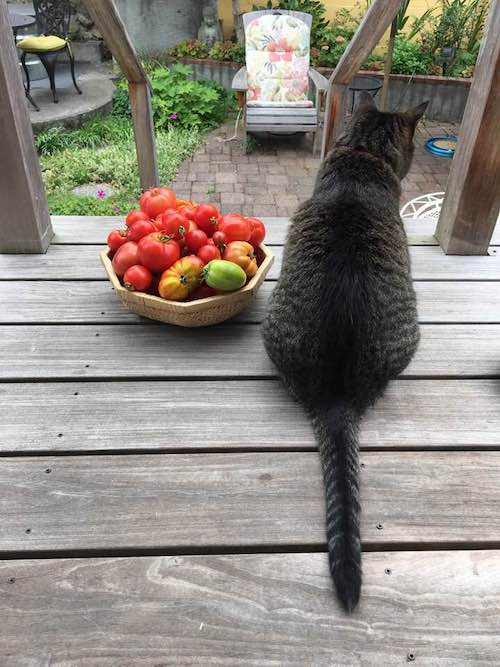 Sept. 7, 2019—Zoe on the porch with the tomatoes:
